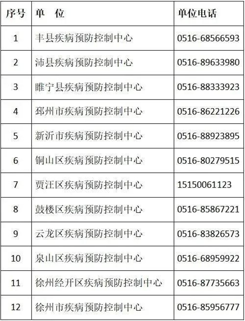 徐州市各县(市)、区疾病预防控制机构0008全讯注册的联系方式