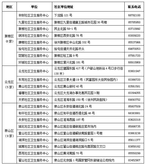 参与2022年度徐州市心脑血管疾病综合防控项目的基层医疗机构名单