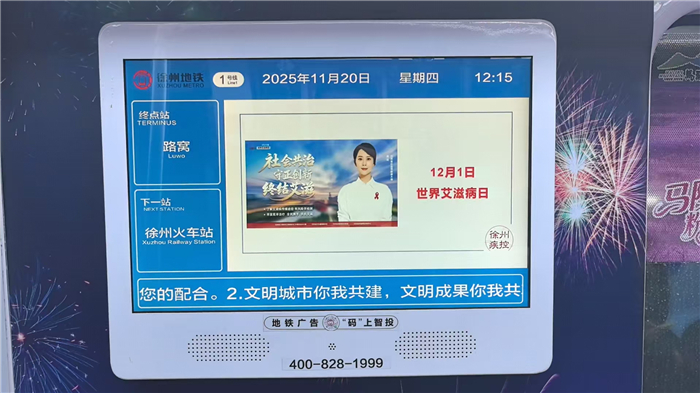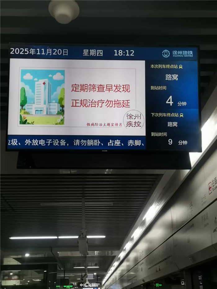 为深入推进艾滋病与性病防治知识普及,提升公众健康素养与自我保护意识,营造全社会共同参与艾防工作的良好氛围,徐州市疾病预防控制中心于11月20日起,在地铁线路全线启动为期一个月的艾滋病、性病防治核心知识宣传视频播放活动。此次大规模、广覆盖的公益宣传,旨在将健康知识融入市民日常出行,打通科普宣传的“最后一公里”。