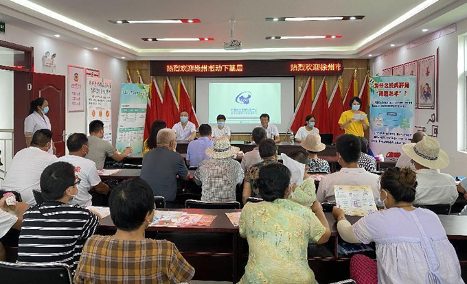 活动现场,刘台村服务大厅门前悬挂“积极预防、主动检测、规范治疗”横幅,大厅内led电子屏上显示“积极检测治愈 消除丙肝危害”标语;在培训教室设置问卷调查、咨询和免费检测、健康知识宣传三个区域。上午9时活动开始,徐州疾控中心专家孙传武为村民普及丙型肝炎的传播途径、流行现状及防控策略,帮助村民提高防治意识,及时采取有效防护措施。