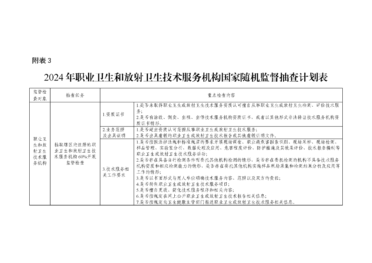 2024年职业卫生和放射卫生国家随机监督抽查计划